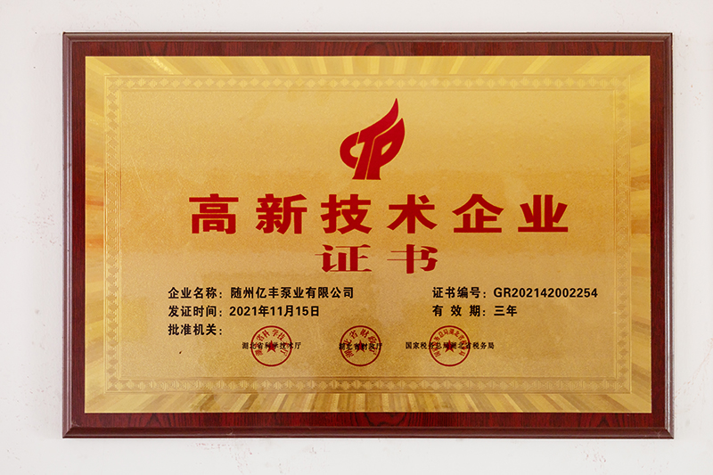 隨州億豐泵業(yè)有限公司位于隨州市曾都經(jīng)濟(jì)開發(fā)區(qū),建筑面積15000平方米,公司現(xiàn)有大學(xué)文憑以上的35人、技術(shù)人員25人(高級(jí)職稱5人、中級(jí)職稱以上27人)。公司自成立以來先后獲得高新技術(shù)企業(yè)、“專精特新”小巨人企業(yè)、隱形冠軍、著名商標(biāo)等一系列榮譽(yù)。